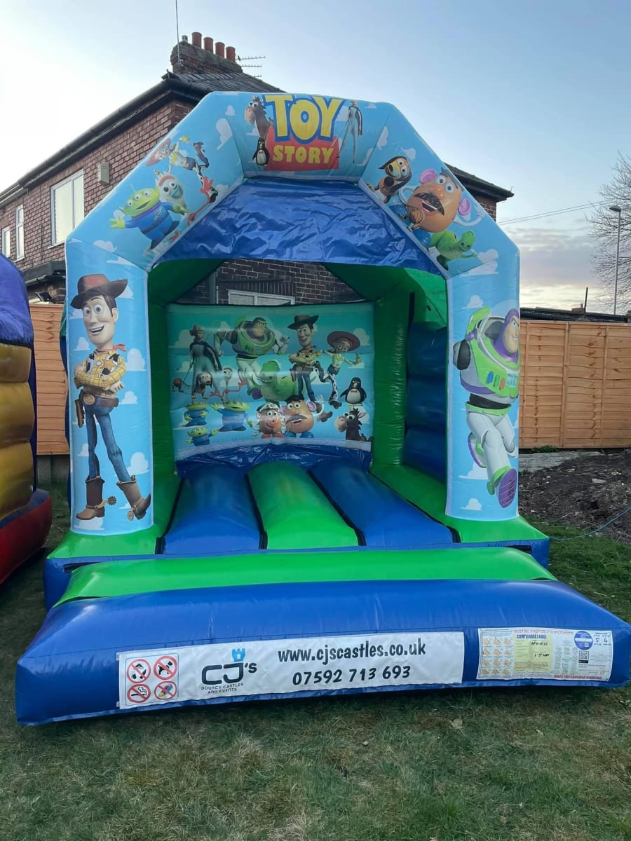 At CJ's Bouncy Castle Hire, we offer a fun and exciting Toy Story 10x12ft bouncy castle perfect for smaller gardens in the local areas of Leyland, Preston, Penwortham, Chorley, Croston, Burscough, Ormskirk, Southport, Longton, Hutton, New Longton, Euxton, Bamber Bridge, Hesketh Bank, Tarleton, Bretherton, Worden, Eccleston, Whittle Le Woods, Fullwood, Standish, Copple, Charnock Richard, Addlington, Heath Charnock, Hallsall, Aughton, Scarisbrick. Our toy story bouncy castle is available for hire all year round and is sure to keep the little ones entertained for hours.